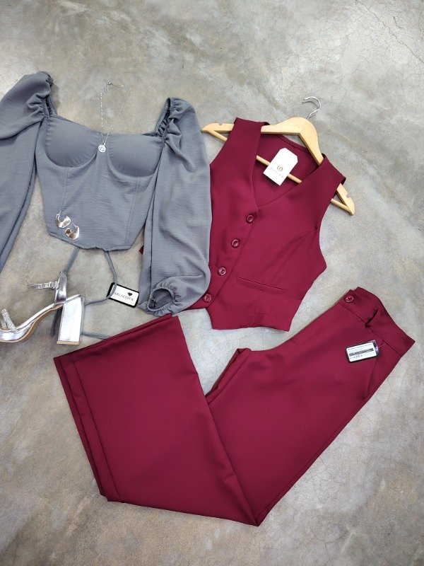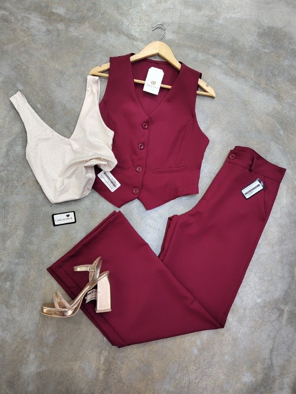 Chaleco más pantalón palazo ,color bordo